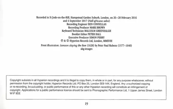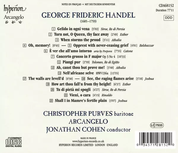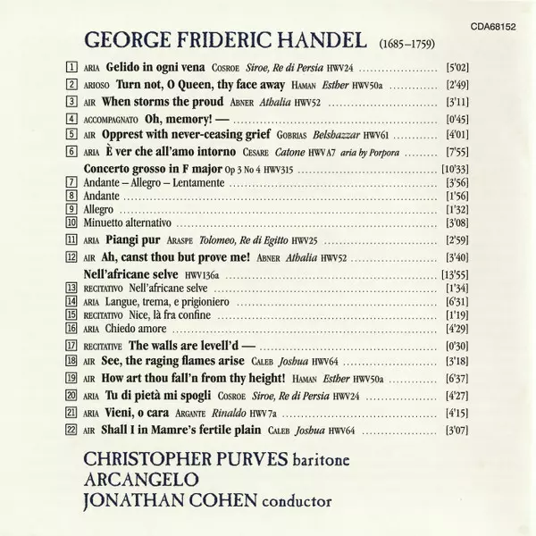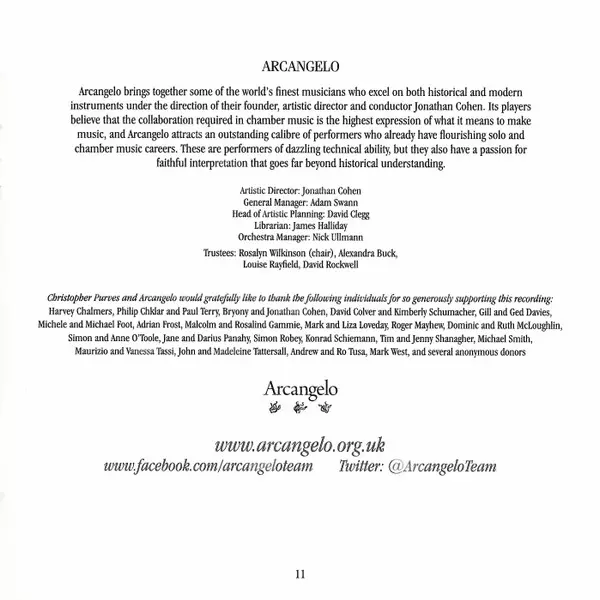 | Artista | Christopher Purves | Arcangelo | Jonathan Cohen |
