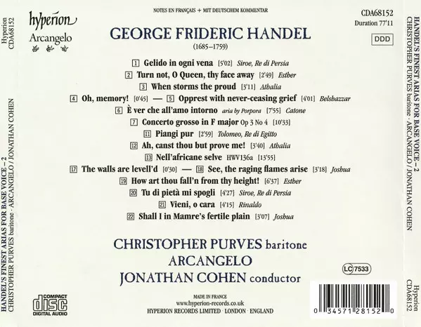 | Título | Handel's Finest Arias For Base Voice, Vol. 2 |