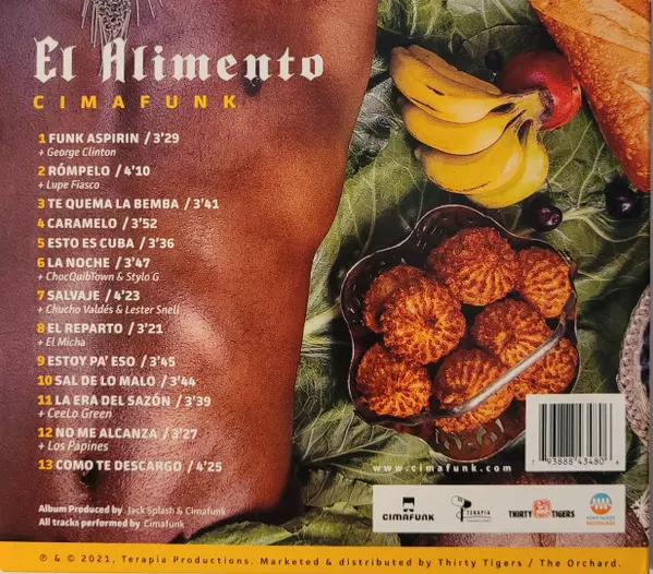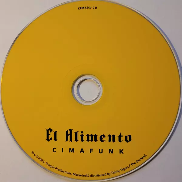 Cimafunk: El Alimento versión en CD en estándar edición. Esta edición en concreto se lanzó en EE.UU. en la editorial Terapia Productions en colaboración con Mono Mundo Recordings el día 8. diciembre 2023. Álbum puede clasificarse como género Funk / Soul.