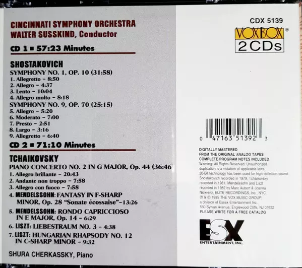 | Título | Cincinatti-Susskind: Shostakovich & Tchaikovsky |