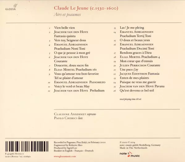 | Artista | Paolo Cherici | Claudine Ansermet | Claude Le Jeune |
