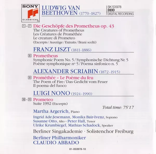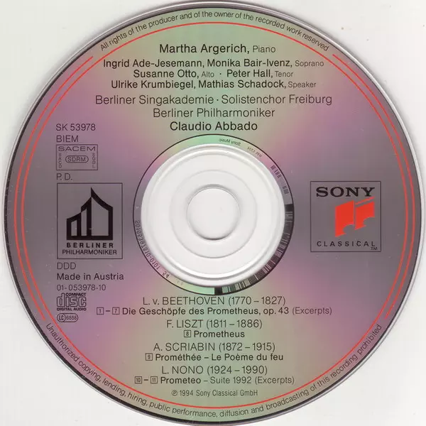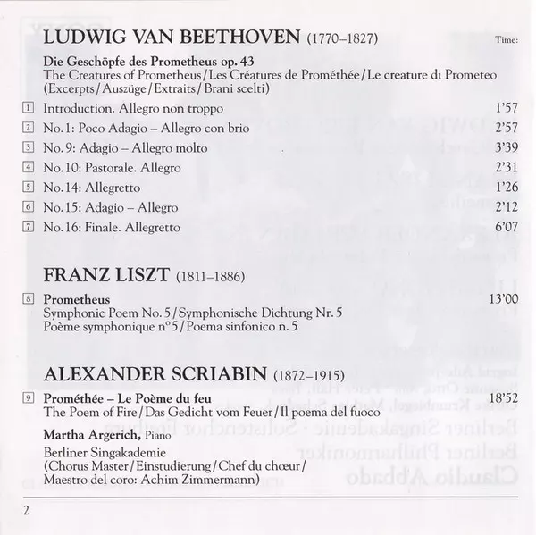 | Artista | Ludwig van Beethoven | Berliner Philharmoniker | Martha Argerich | Claudio Abbado | Franz Liszt | Luigi Nono | Alexander Scriabin |