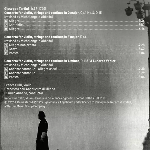 | Composed By Giuseppe Tartini | Conductor Claudio Abbado | Orchestra Orchestra Dell'Angelicum Di Milano | Violin Franco Gulli | ||