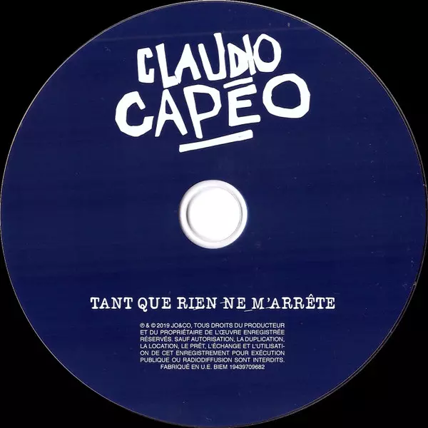 Claudio Capéo: Tant Que Rien Ne M'arrête versión en CD en estándar edición. Esta edición en concreto se lanzó en Francia en la editorial Jo & Co el día 3. mayo 2019. Álbum abarca todos los géneros Pop, Chanson y Europop.