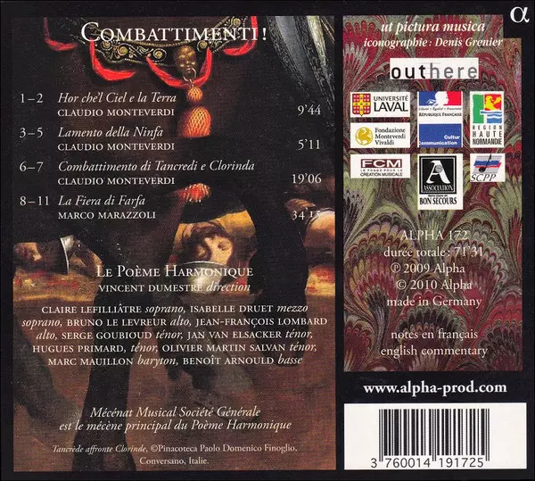 | Baritone Vocals [Testo] Marc Mauillon | Composed By Claudio Monteverdi | Mezzo-soprano Vocals [Clorinda] Isabelle Druet | Tenor Vocals Jan van Elsacker | ||