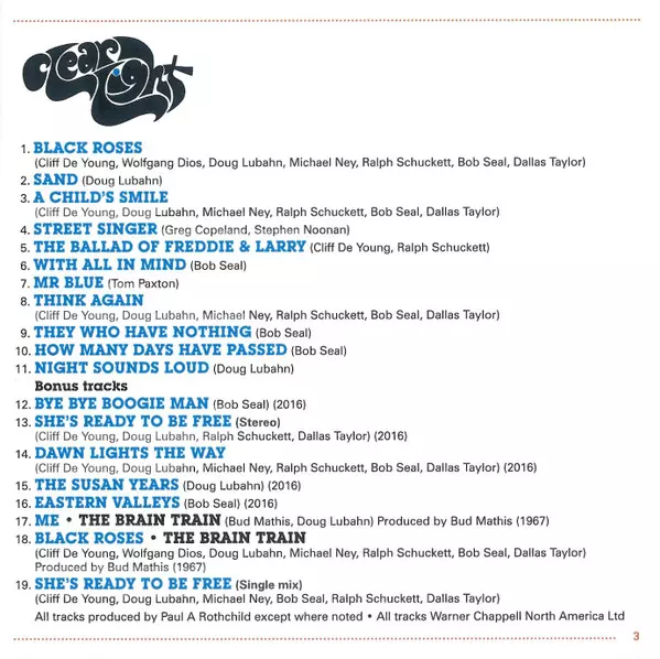 | Harpsichord Van Dyke Parks | Written-By Bob Seal, Cliff De Young, Dallas Taylor, Doug Lubahn, Michael Ney, Ralph Schuckett | |||