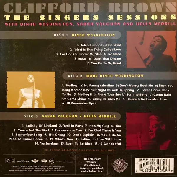 | Artista | Sarah Vaughan | Dinah Washington | Clifford Brown | Helen Merrill |