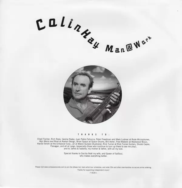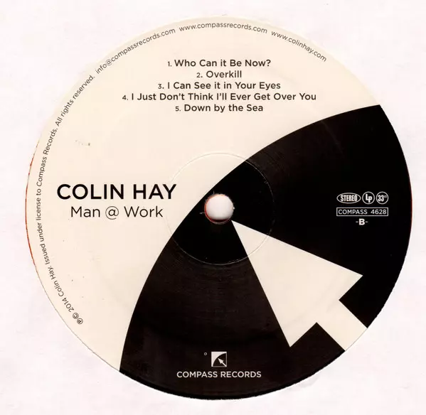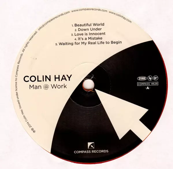 Colin Hay: Man @ Work versión en vinilo LP en estándar edición. Esta edición en concreto se lanzó en EE.UU. en la editorial Compass Records en colaboración con Lazy Eye Records el día 1. junio 2017. Álbum abarca todos los géneros Rock, Pop y Pop Rock.