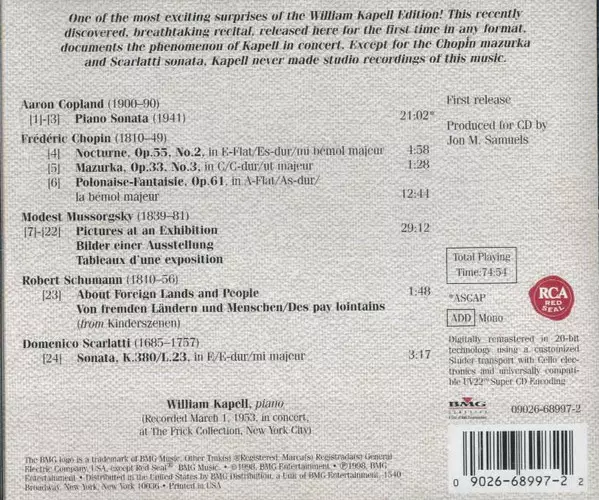 | Artista | Frédéric Chopin | Modest Mussorgsky | Aaron Copland | William Kapell |