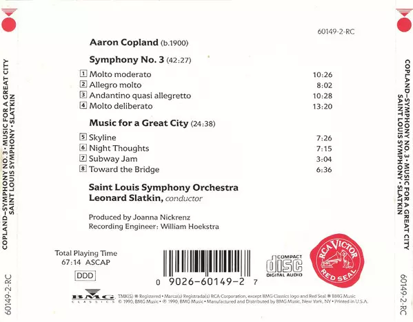 | Artista | Aaron Copland | Saint Louis Symphony Orchestra | Leonard Slatkin |