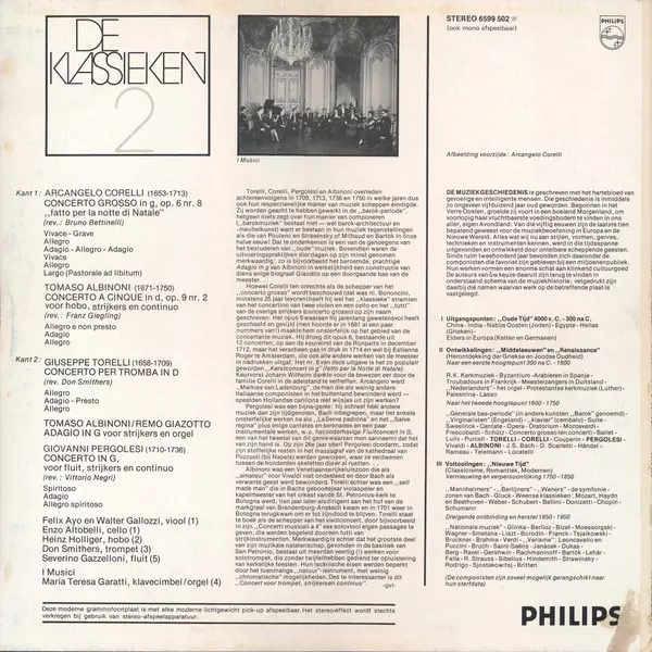 | Título | De Klassieken 2 - Corelli - Kerstconcert; Albinoni - Adagio Hoboconcert; Torelli - Trompetconcert; Pergolesi - Fluitconcert |