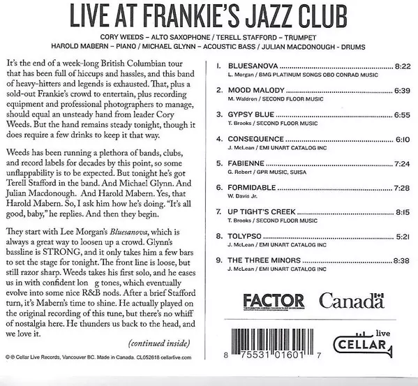 | Título | Live At Frankie's Jazz Club |