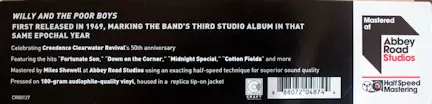 Two more releases of the sold-out Creedence Clearwater Revival - Half-Speed Studio Albums vinyl collection are coming, with Green River & Willy And The Poor Boys due out in November 2019. Both albums are recorded on the latest and greatest Half-Speed Remaster, prepared by Miles Showell at Abbey Road Studios,. Pressed on 180gram vinyl in high qua...