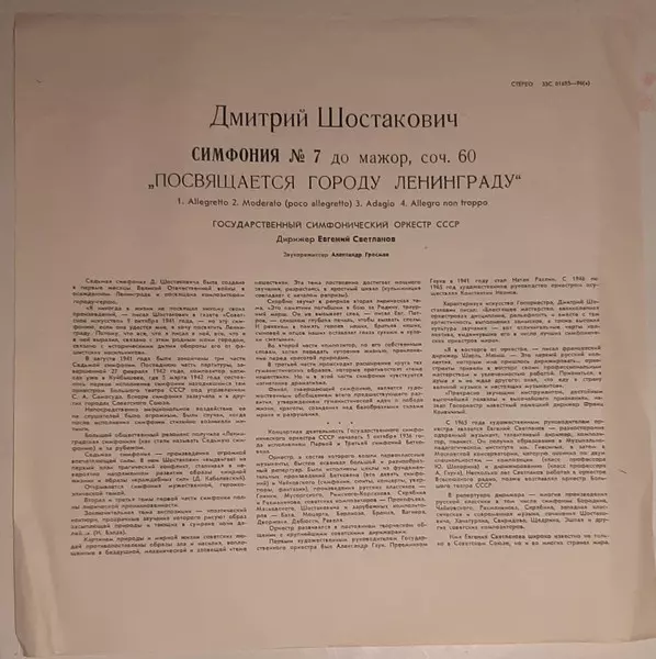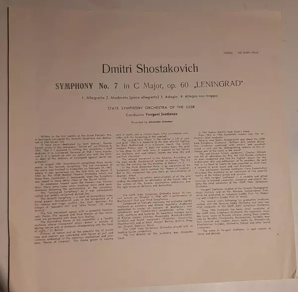 | Título | Symphony No. 7 In C Major, Op. 60 "Leningrad" / Симфония N7 До Мажор, соч. 60. "Посвящается Городу Ленинграду" |