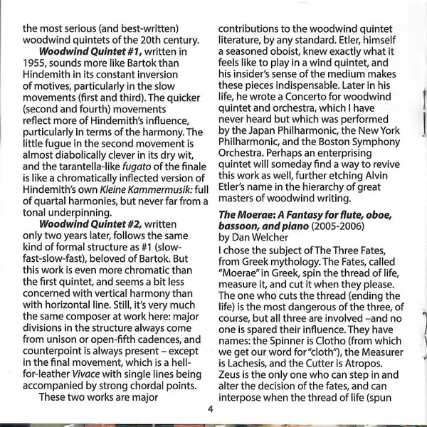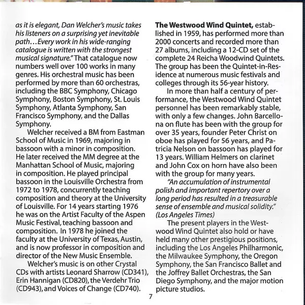 | Artista | Dan Welcher | Westwood Wind Quintet | Alvin Etler | Lisa Bergman |