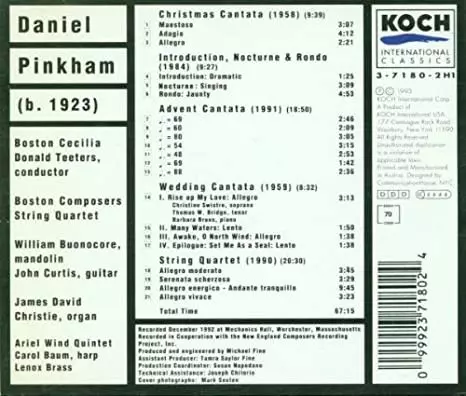 | Artista | The Boston Cecilia | Donald Teeters | Daniel Pinkham | Boston Composers String Quartet | William Buonocore | John Curtis |
