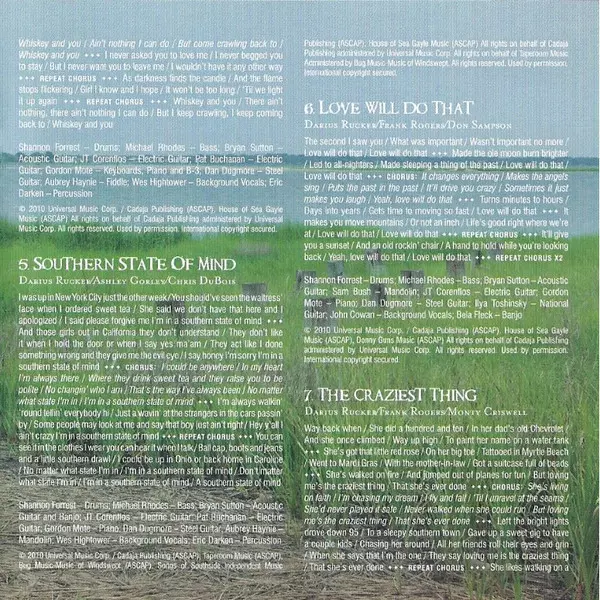 Acoustic Guitar Bryan Sutton | Backing Vocals Wes Hightower | Bass Michael Rhodes | Drums Shannon Forrest | Electric Guitar JT Corenflos, Pat Buchanan | Fiddle Aubrey Haynie | Organ [Wurly] Gordon Mote | Percussion Eric Darken | Steel Guitar Dan Dugmore | Written-By Darius Rucker, Jay Clementi, Radney Foster