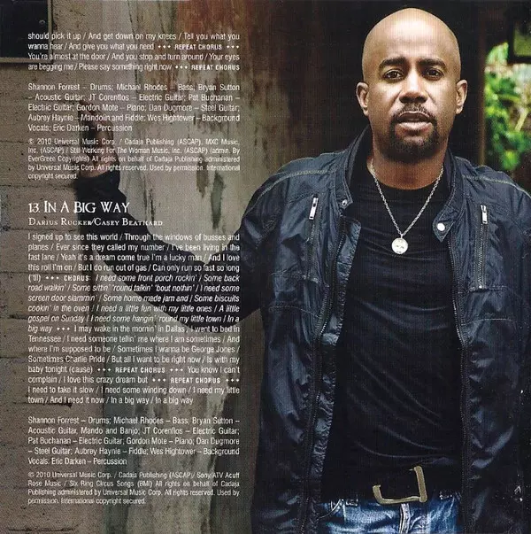 Acoustic Guitar Bryan Sutton | Backing Vocals Wes Hightower | Drums Shannon Forrest | Electric Guitar JT Corenflos, Pat Buchanan | Fiddle Aubrey Haynie | Fretless Bass Michael Rhodes | Mandolin Ilya Toshinsky | Percussion Eric Darken | Piano Gordon Mote | Steel Guitar Dan Dugmore | Written-By Darius Rucker, Kim Tribble