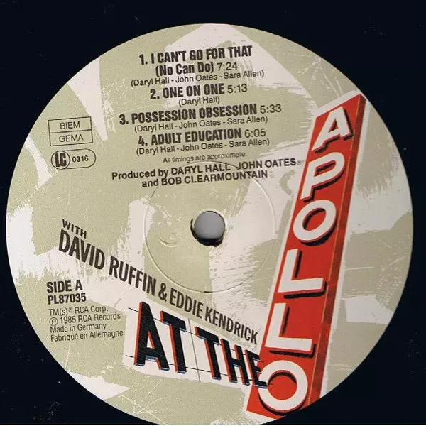 | Artista | Daryl Hall & John Oates | Eddie Kendricks | David Ruffin |