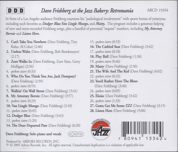 | Título | Dave Frishberg At The Jazz Bakery: Retromania |