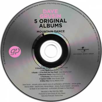 Dave Grusin: 5 Original Albums versión en 5CD/Caja en estándar edición. Esta edición en concreto se lanzó en Europa en la editorial The Jazz Labels en colaboración con GRP y Universal Music Group el día 29. junio 2018. Álbum abarca todos los géneros Escenario y pantalla, Jazz, Fusion y Soundtrack.
