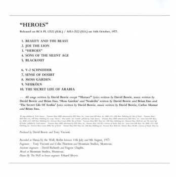 Just a few months after the recording of "Low", David Bowie returned to the Hansa recording studios in Berlin in July and August 1977 to record "Heroes", the second part of his creative period, later called the "Berlin Trilogy". "Lodger", the third part of the trilogy, was largely recorded in France, where Bowie moved in 1978. "Heroes" is the on...