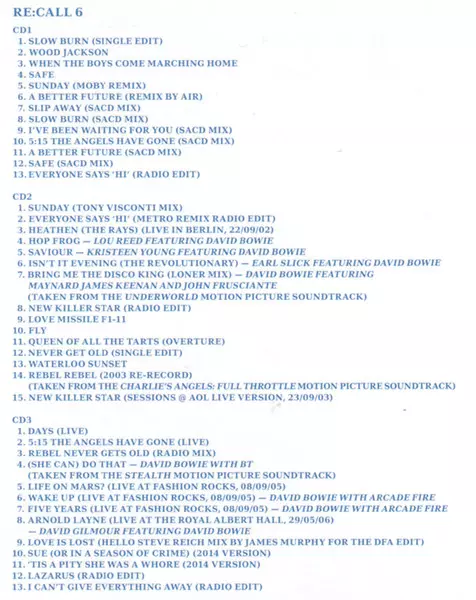 | 1-12 | David Bowie: Heathen (The Rays) | 4:16 min | |