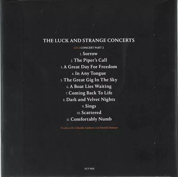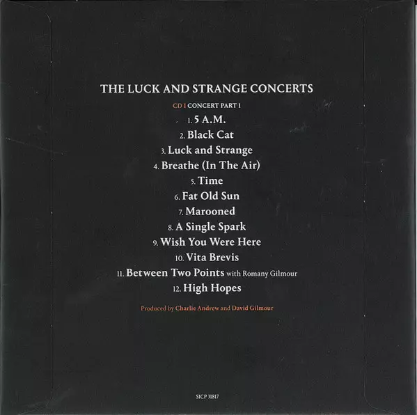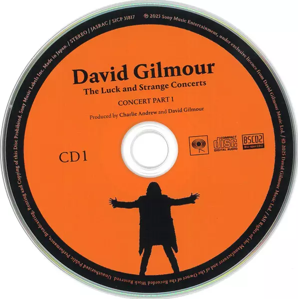 David Gilmour: The Luck And Strange Concerts versión en 2CD/2Blu-ray en estándar edición. Esta edición en concreto se lanzó en Japón en la editorial Sony Records Int'l el día 10. enero 2025. Álbum puede clasificarse como género Rock. Blu Spec CD2.