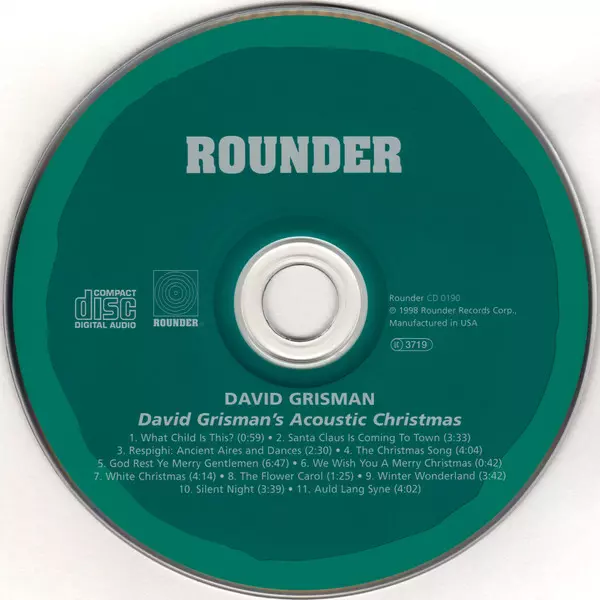 David Grisman: David Grisman's Acoustic Christmas versión en CD en estándar edición. Esta edición en concreto se lanzó en EE.UU. en la editorial Rounder Records el día 1. julio 1991. Álbum abarca todos los géneros Música clásica, Folk, World, & Country, Jazz, Bluegrass, Neo-Romantic, Religious y Holiday.
