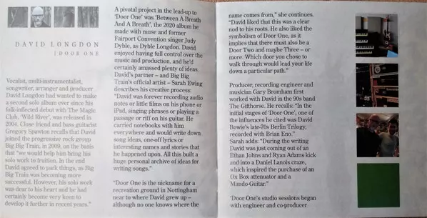 David Longdon: Door One versión en CD en estándar edición. Esta edición en concreto se lanzó en Reino Unido en la editorial English Electric Recordings el día 28. abril 2023. Álbum abarca todos los géneros Rock y Música acústica.