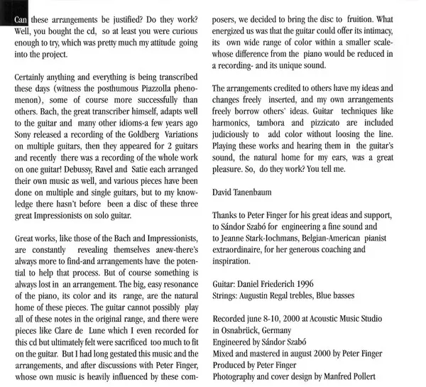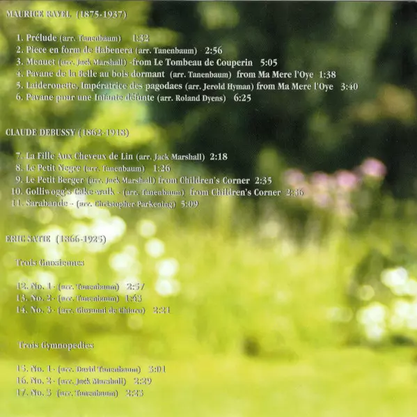 | Artista | Claude Debussy | Maurice Ravel | Erik Satie | David Tanenbaum |