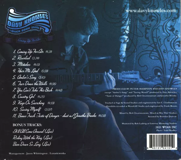 Davy Knowles: Coming Up For Air [bonus track edition] versión en CD en estándar edición. Esta edición en concreto se lanzó en EE.UU. en la editorial WYAN Inc el día 24. septiembre 2021. Álbum abarca todos los géneros Rock, Blues, Blues-Rock y Country-Blues. Bonus Tracks.