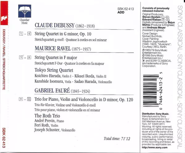 | Título | Debussy, Ravel & Fauré - String Quartets & Piano Trio |