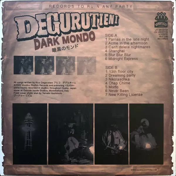 Degurutieni: Dark Mondo DLX versión en vinilo LP en deluxe edición. Esta edición en concreto se lanzó en Suiza en la editorial Voodoo Rhythm el día 15. enero 2021. Álbum abarca todos los géneros Rock, Jazz, Lo-Fi y Blues-Rock. Deluxe Edition Vinyl.