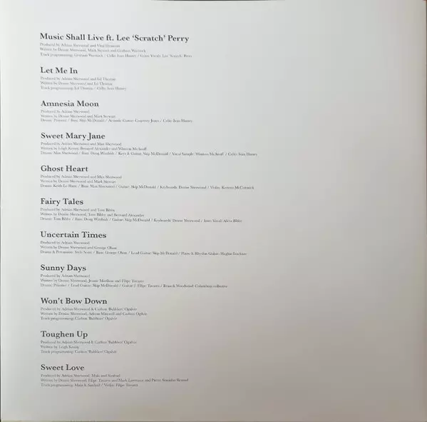 Producer Adrian Sherwood, Mala (4), Simbad | Programmed By [Track programming] Mala (4), Simbad | Written-By Denise Sherwood, Mark Lawrence (2), P.L. Stanislas-Renouf | Written-By, Violin Filip Tavares