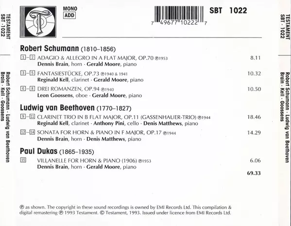 | Artista | Dennis Brain | Leon Goossens | Reginald Kell |