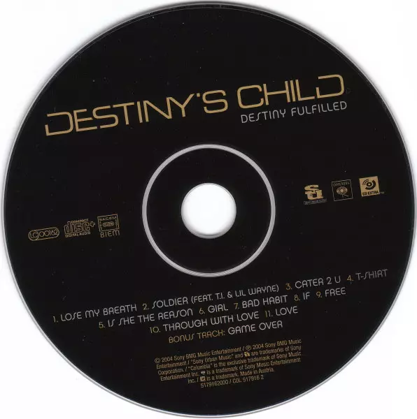 Destiny's Child: Destiny Fulfilled versión en CD en estándar edición. Esta edición en concreto se lanzó en Europa en la editorial Sony Urban Music en colaboración con Columbia el día 29. mayo 2015. Álbum abarca todos los géneros Pop, Funk / Soul y Contemporary R&B.