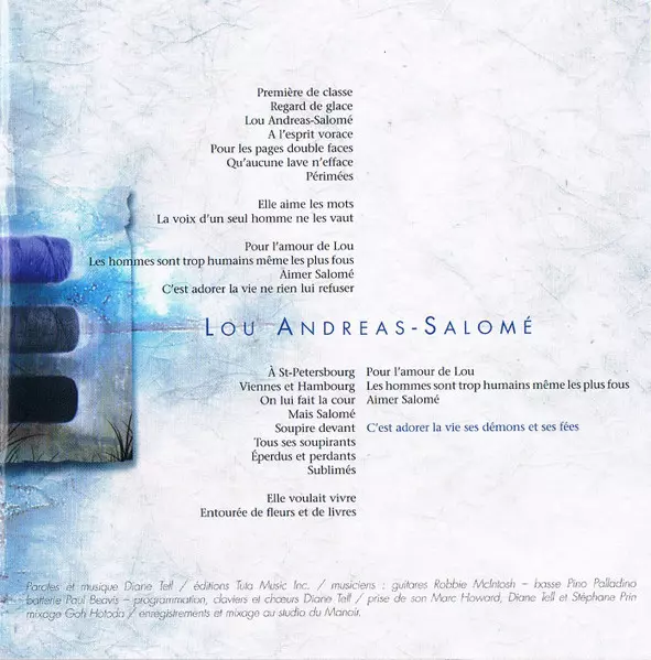 Mixed By [Mixage] Goh Hotoda | Music By Diane Tell | Recorded By [Prise De Son] Diane Tell, Marc Howard | Text By [Poem] Friedrich Nietzsche | Translated By [Poem] Georges Ribemont-Dessaignes