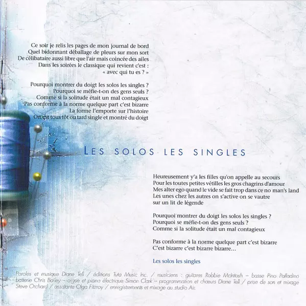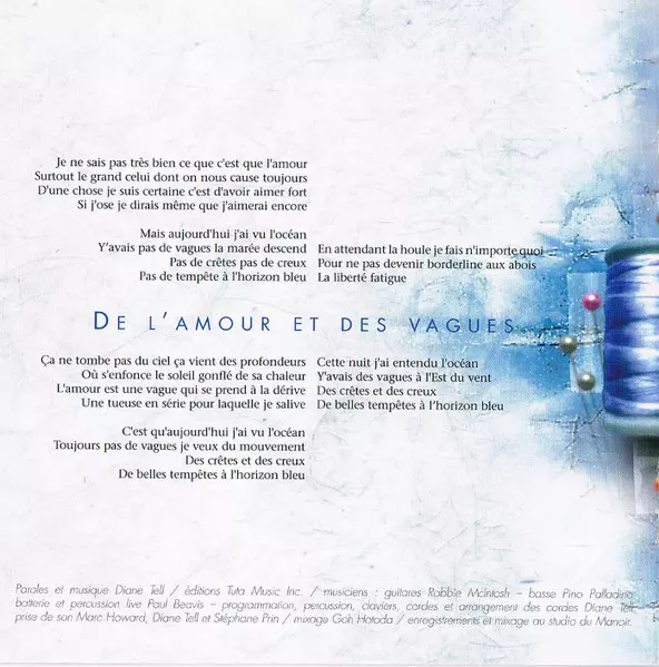 Lyrics By, Music By Diane Tell | Mixed By [Mixage] Steve Orchard | Recorded By [Prise De Son] Diane Tell, Marc Howard, Stéphane Prin