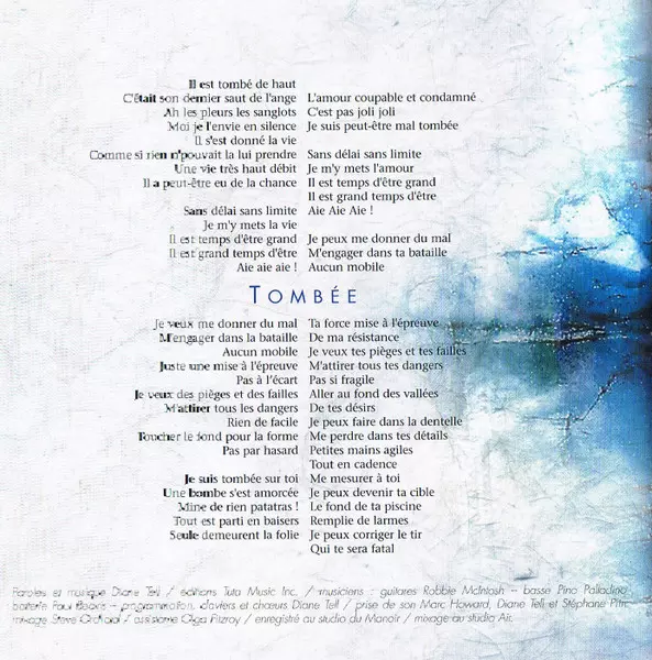 Lyrics By, Music By Diane Tell | Mixed By [Mixage] Goh Hotoda | Recorded By [Prise De Son] Diane Tell, Marc Howard, Stéphane Prin