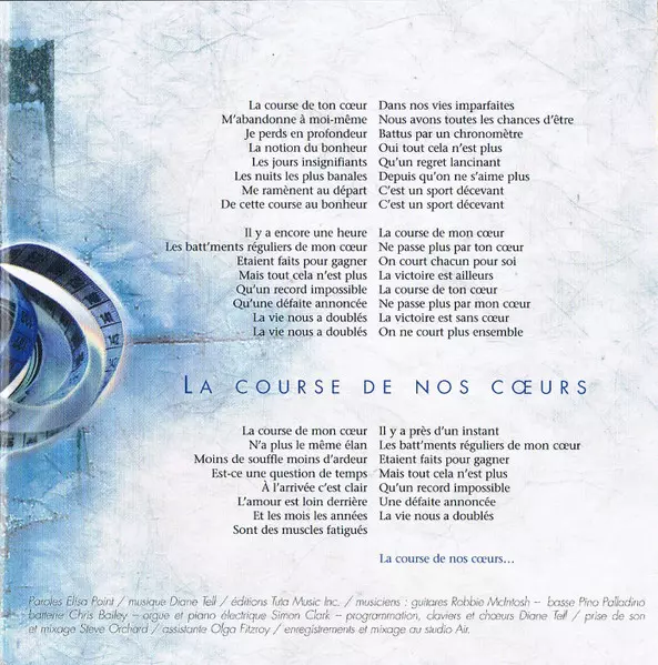 Lyrics By Elisa Point | Music By Diane Tell | Recorded By [Prise De Son], Mixed By [Mixage] Steve Orchard