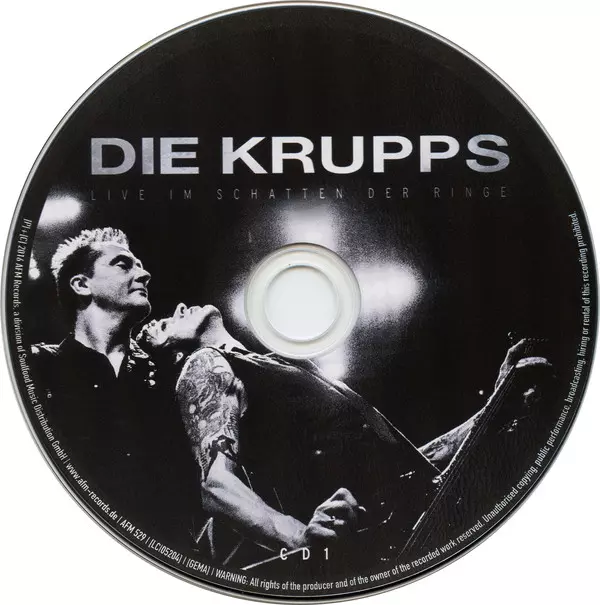 Die Krupps: Live Im Schatten Der Ringe versión en 2CD/Blu-ray en estándar edición. Esta edición en concreto se lanzó en Alemania en la editorial AFM Records el día 29. mayo 2016. Álbum abarca todos los géneros Música electrónica y Industrial. 2CD + Bluray.