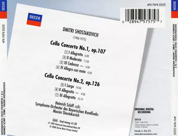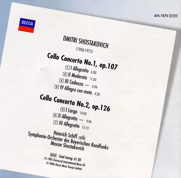 Artista | Dmitri Shostakovich | Symphonie-Orchester Des Bayerischen Rundfunks | Maxim Shostakovich | Heinrich Schiff |