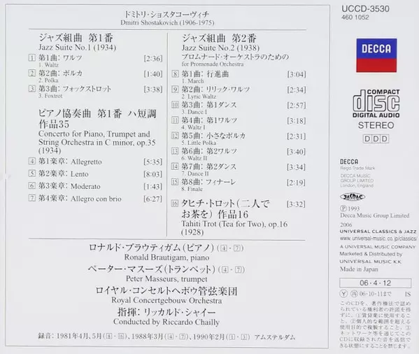 | Artista | Dmitri Shostakovich | Concertgebouworkest | Riccardo Chailly |