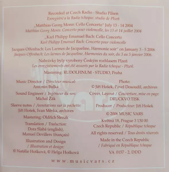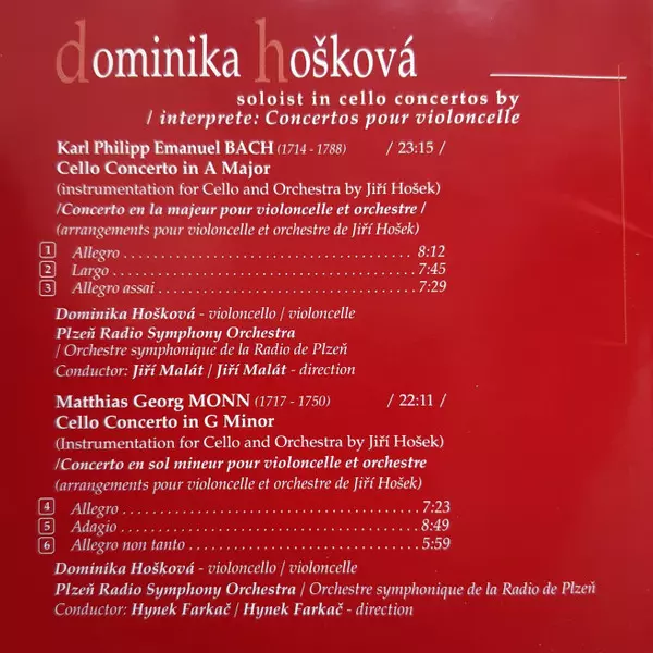 | Artista | Carl Philipp Emanuel Bach | Jacques Offenbach | Radio Symphony Orchestra Pilsen | Matthias Georg Monn | Hynek Farkač | Jiří Malát | Dominika Hošková |