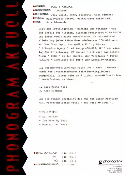 | Artista | Doro | Warlock |