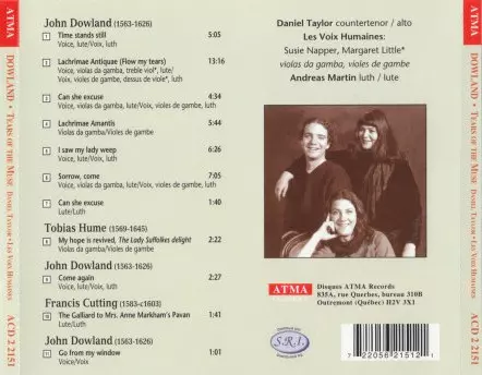 | Artista | John Dowland | Daniel Taylor | Les Voix Humaines | Andreas Martin |
