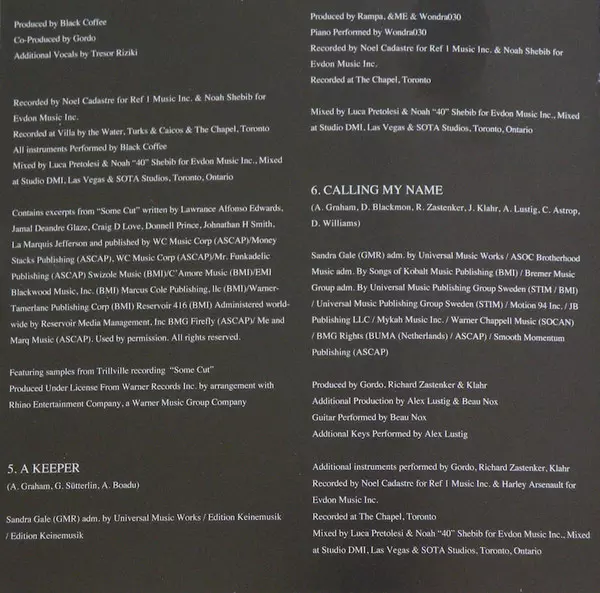 Composed By, Lyrics By Alex Lustig, Aubrey Graham, Christian Beau Anastasiou Astrop, Govi (4), Marsha Ambrosius, Mukengerwa Tresor Riziki, N. Stewart, Vidal Davis | Producer Alex Lustig, Beau Nox, Govi (4), Kid Masterpiece | Vocals [Additional] Beau Nox
