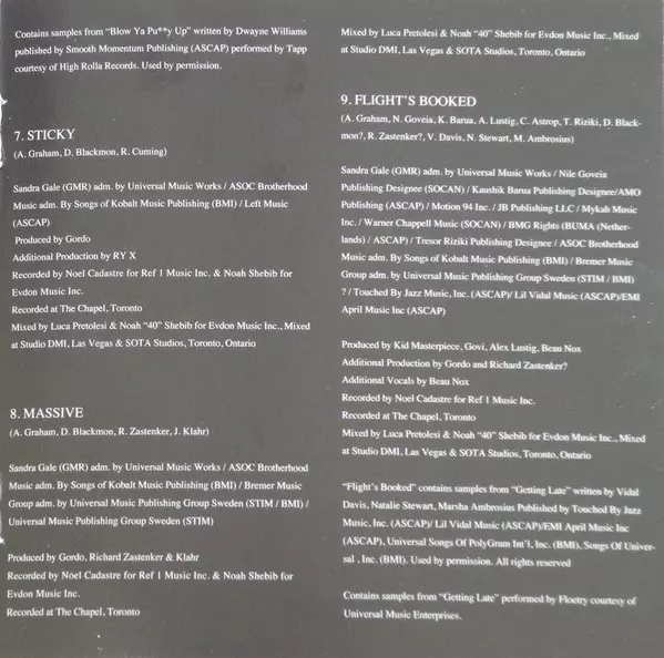 Composed By, Lyrics By Alex Lustig, Aubrey Graham, Christian Beau Anastasiou Astrop, D. Williams, Diamante Blackmon, Johannes Klahr, Richard Zastenker | Engineer Harley Arsenault | Guitar Beau Nox | Keyboards Alex Lustig | Producer Beau Nox, Gordo (34), Johannes Klahr, Richard Zastenker | Producer [Additional] Alex Lustig