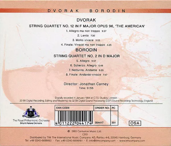 | Título | Dvorak: Quartet No. 12 In F Major, Opus 96, 'The American' / Borodin: String Quartet No. 2 In D Major |